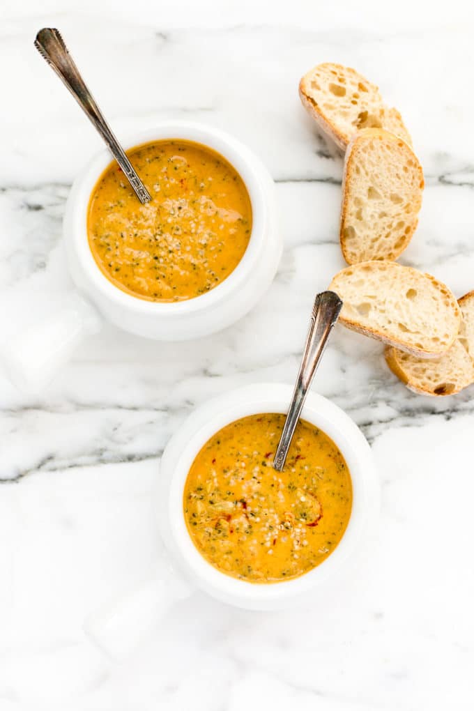 And that it's. Ladle your soup into bowls, sprinkle with Hemp Hearts if you'd like, and sink your spoon (or your bread) into this creamy, cheesy soup.