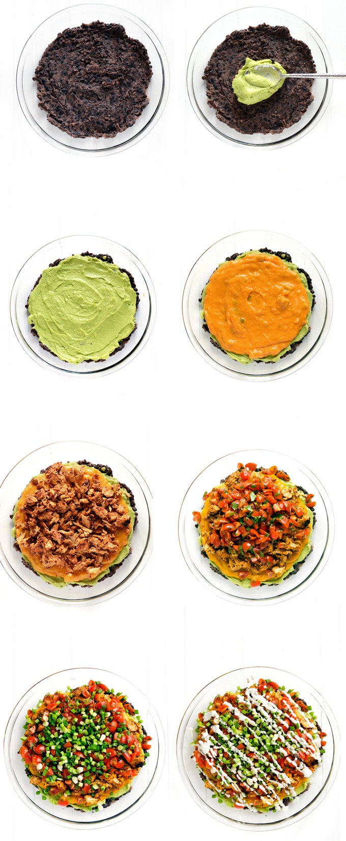 Making this layered stack of goodness requires a handful of steps, but I promise that the effort is completely worth it in the end, as it's seriously the most satisfying nacho dip ever (vegan or otherwise). Plus, you can prepare most of the layers ahead of time, which makes it easier to toss together before serving.