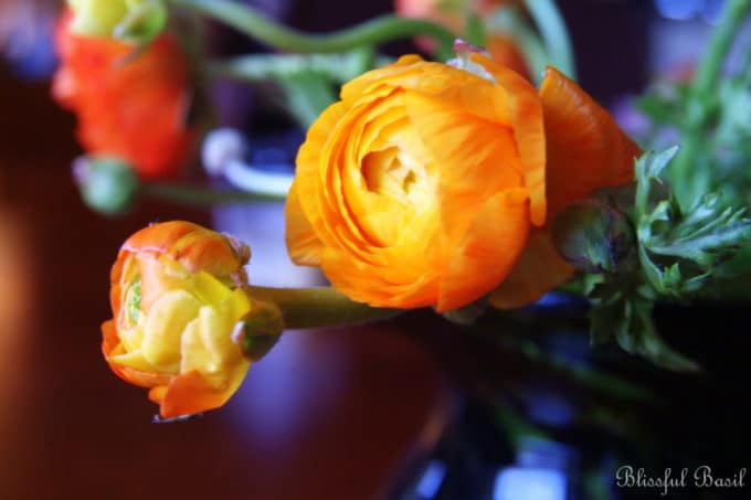 Odd title for a food blog post, huh? At least I caught your attention. Ranunculus are, hands down, my favorite flower and whenever I have the chance to purchase them at a reasonable price, I most certainly take advantage. So, when I found a bunch of golden and orange ranunculus at Trader Joe's for $5.99, I busted out my wallet and moseyed on out of there feeling about 5% happier. Of course I also picked up a few ingredients along the way, making sure to focus on food items that would coordinate well with the colors of my new pretty petals. What did I find to match? Petite orange and red bell peppers. They're not only petite, they're also precious, and I'm pretty sure that Peter Piper picked a peck of them back in the day.