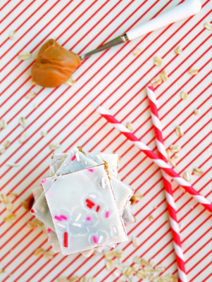 - Pour the remainder (¾ cup) of the melted coconut butter on top of the cookie dough and spread across with a spatula until it is as smooth as possible. Top with sprinkles if desired.