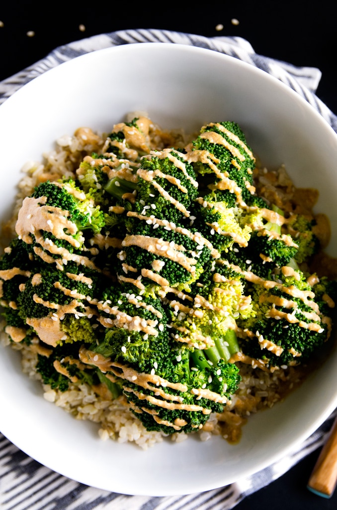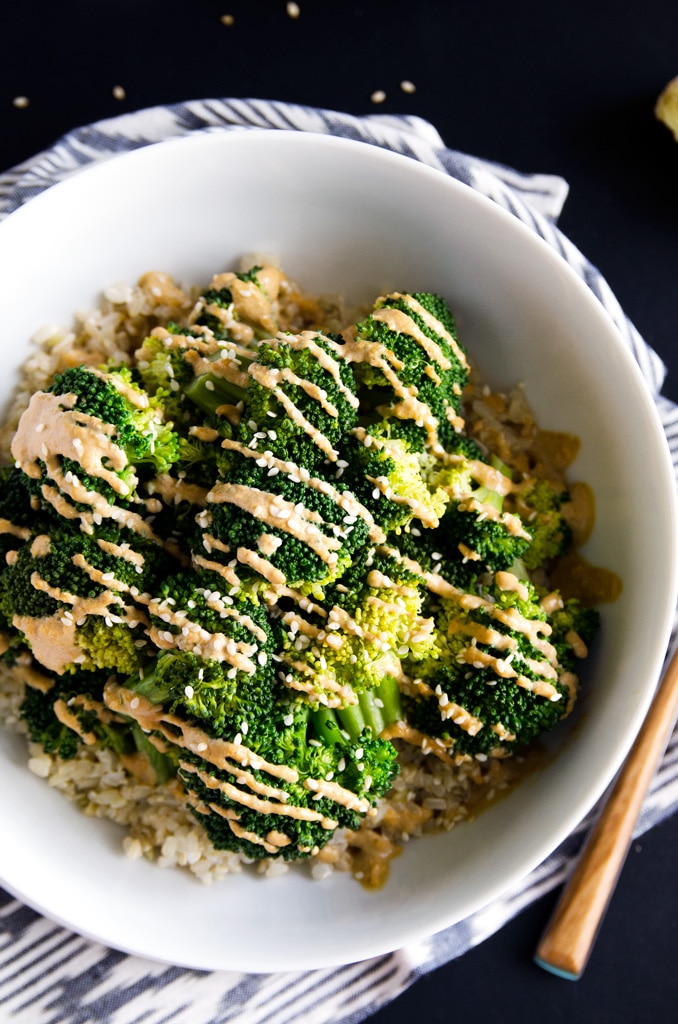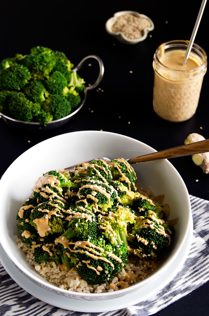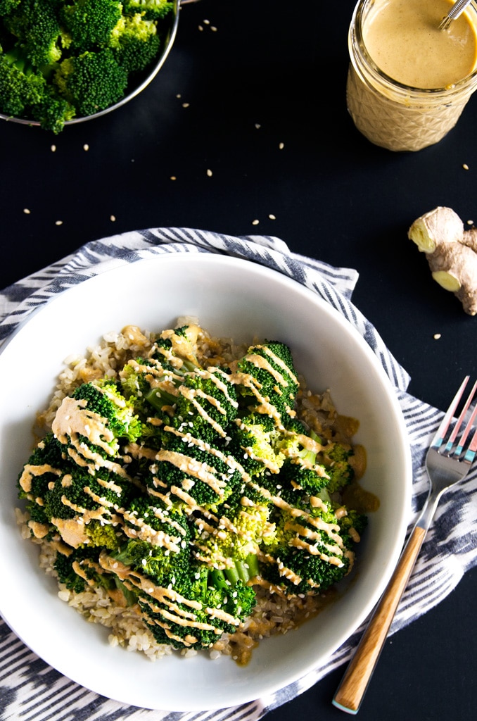 • Divide your cooked brown rice between 3 bowls. Top with the broccoli, and drizzle with the sesame-ginger sauce.