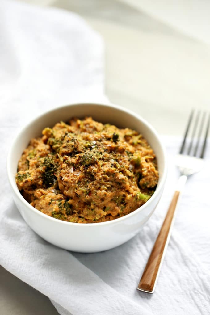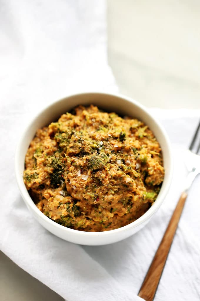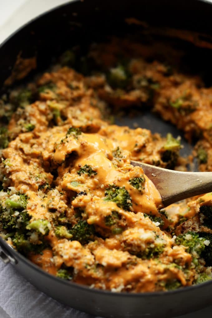 Let's get right to this cheesy goodness. This vegan cheesy broccoli cauliflower rice is another one of those long-forgotten ideas I mentioned in last Friday's post, and I'm bummed that it's taken me this long to test and share it because it's a game-changing, habit-forming delight.