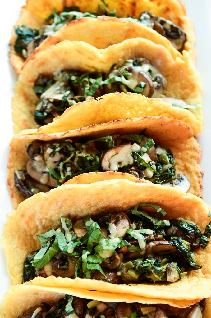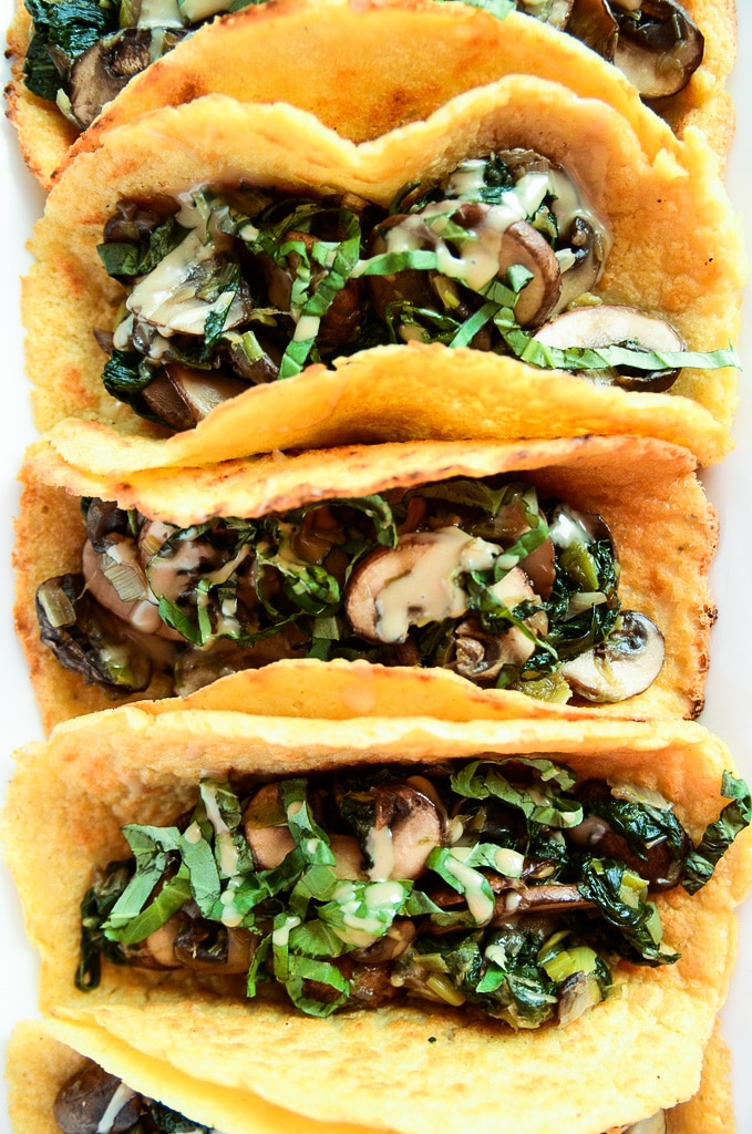 The filling is super simple but so delicious. You'll sauté baby bella mushrooms, spinach, and leeks in a dab of coconut oil and season everything with salt and pepper. After you fill your tortillas with this spinach-mushroom goodness, you'll drizzle a bit of tahini and sprinkle on some fresh basil (if you so choose). Then it's time to fold, bite, savor, and repeat. And please do repeat, because each taco has 6 grams of plant-based protein, healthy fats from the tahini, and an abundance of nutrients that will leave you feeling energized and ready to take on the day.