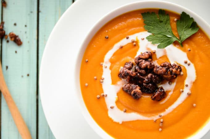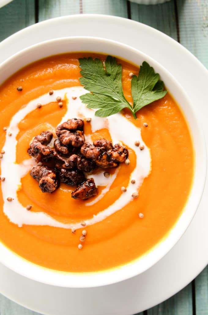 Carrot, Lentil & Squash Soup with Walnut Croutons