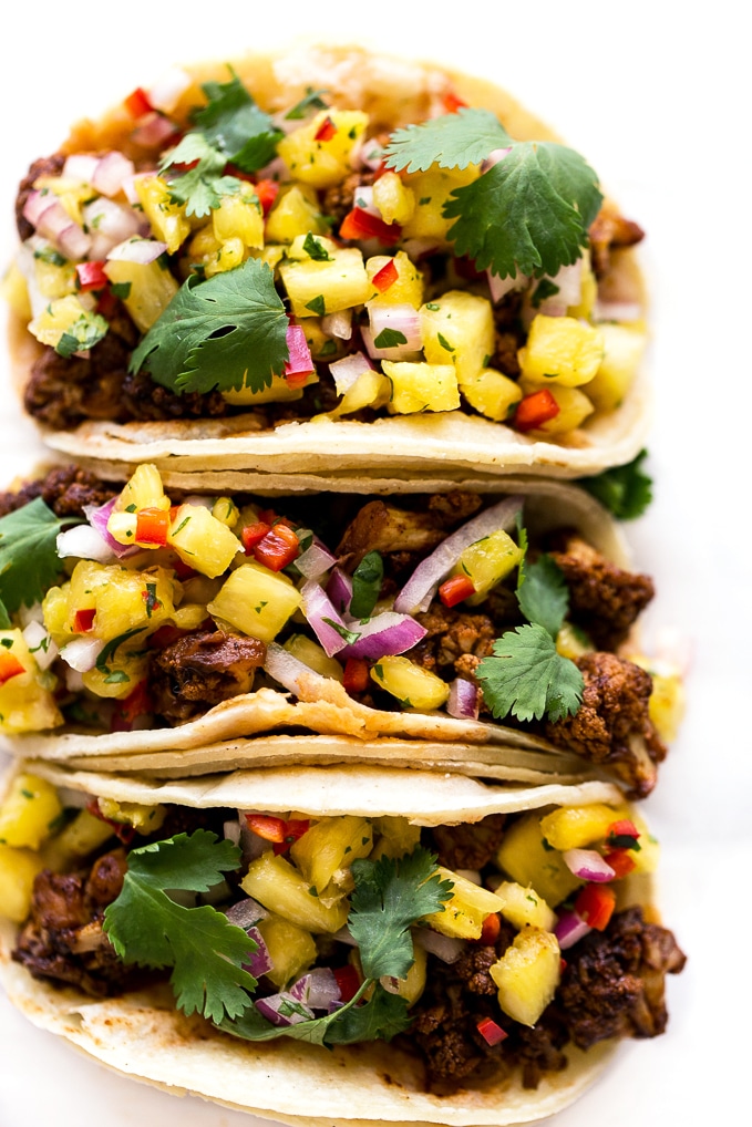 These tacos are delicious. I definitely had twice the amount of pineapple salsa than I needed so I would recommend cutting it in half. My only question is about protein. Is there any way to add protein to this recipe? I was thinking of using this recipe with tempeh instead of cauliflower. Have you tried this?