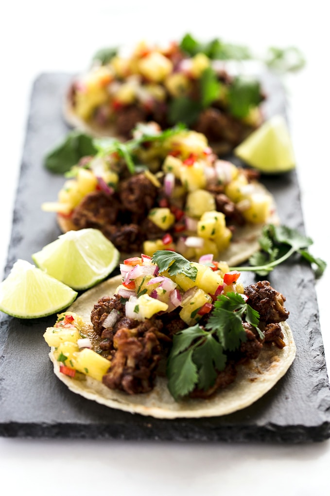 Now, these BBQ Cauliflower Tacos with Pineapple Salsa. They're simple to make and require just 10-ish ingredients.