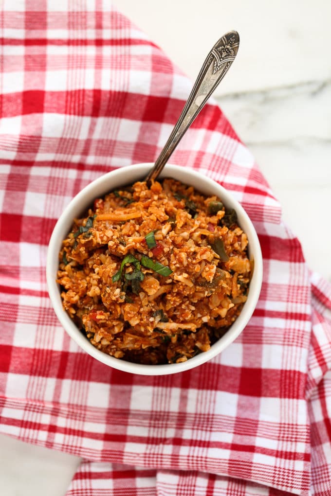 This vegan Italian-style cauilflower rice is one of the most effortless dishes to throw together, which makes it perfect for a busy weeknight. Plus, it's packed with feel-good veggies to help you power through those exceptionally over-scheduled days.
