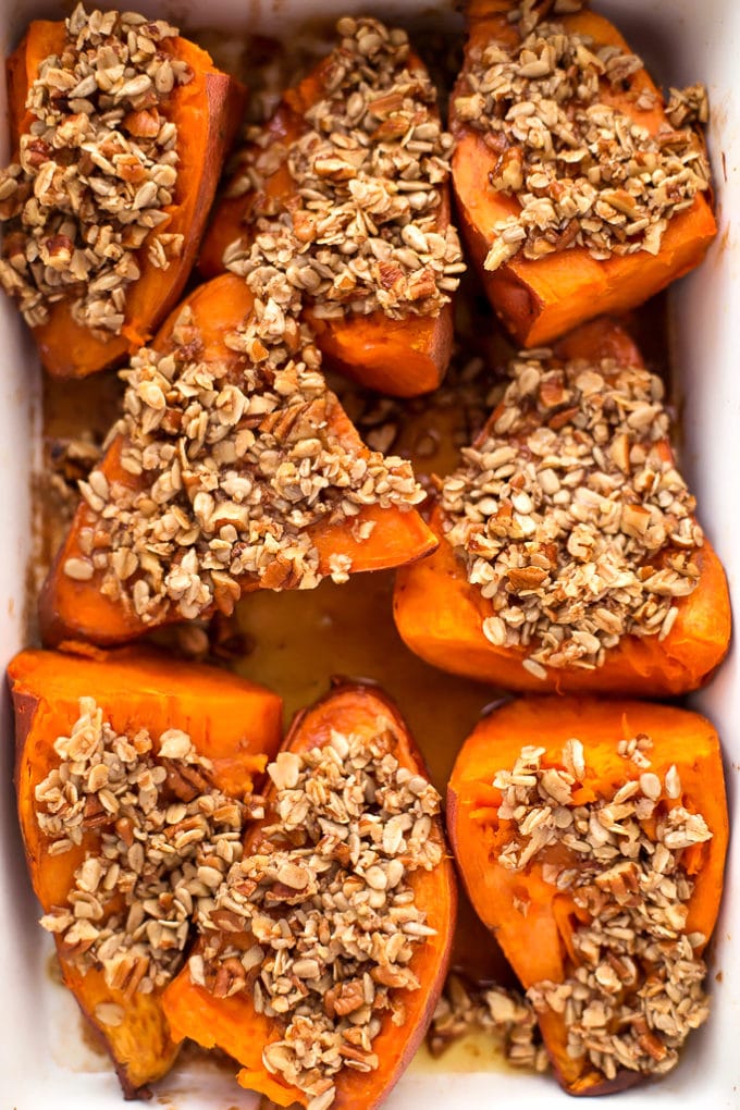 Stuffed Sweet Potatoes with Sunflower-Pecan Crumble | Vegan