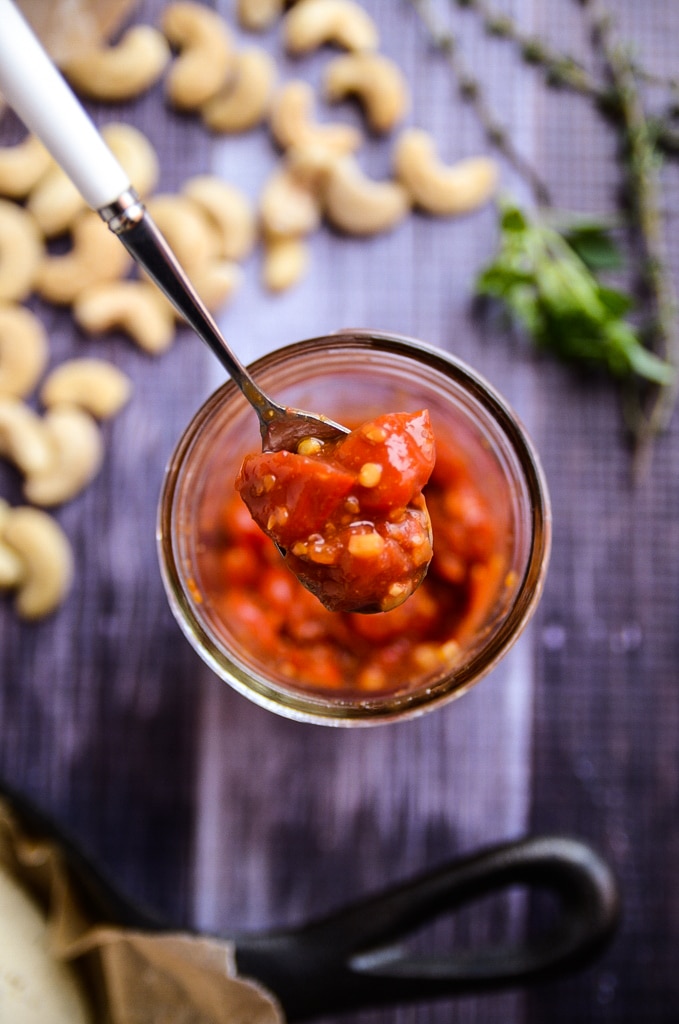 To make up for only two posts this week, I've included two recipes in today's post: herbed cashew cheese + spicy tomato jam. Both are equally delicious and can hold their own; however, they pair so well together that it made perfect sense to photograph and post them at the same time.