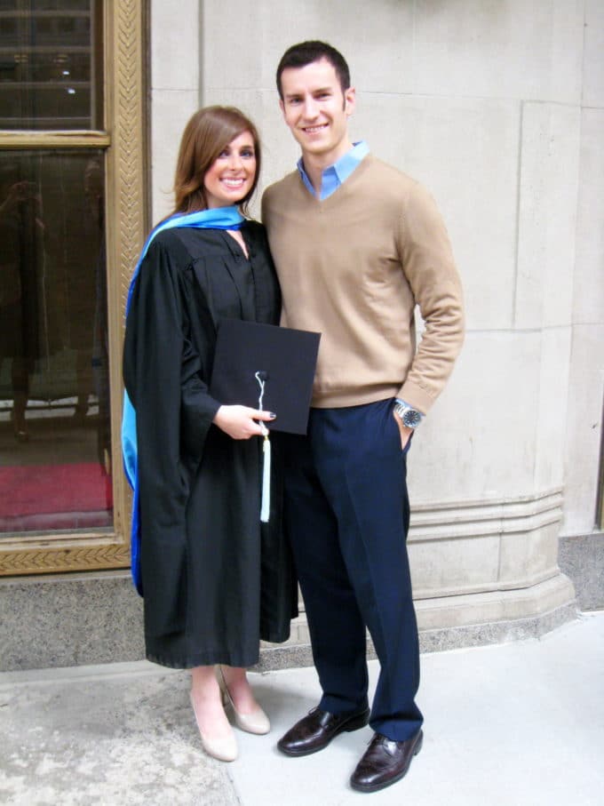 Now, back to graduation. I arrived at the Civic Opera House for The Chicago School's commencement ceremony on Friday morning feeling a little disheveled after hiking 4 blocks around Chicago construction in heels four inches too high and air that was far more swampy than fresh. However, there was no way I was letting a few frizzy hairs and tired legs subdue the excitement of this very momentous occasion. Seeing each of my peers elegantly walk the stage in their Harry Potter-like cloaks and hoods made me smile. The last three years have been marked by cycles of stress and success as we've paved our way through graduate school papers, presentations, exams, and internships, and the day had finally come when we could officially pat ourselves on the back for a job not well, but excellently done. It felt great.