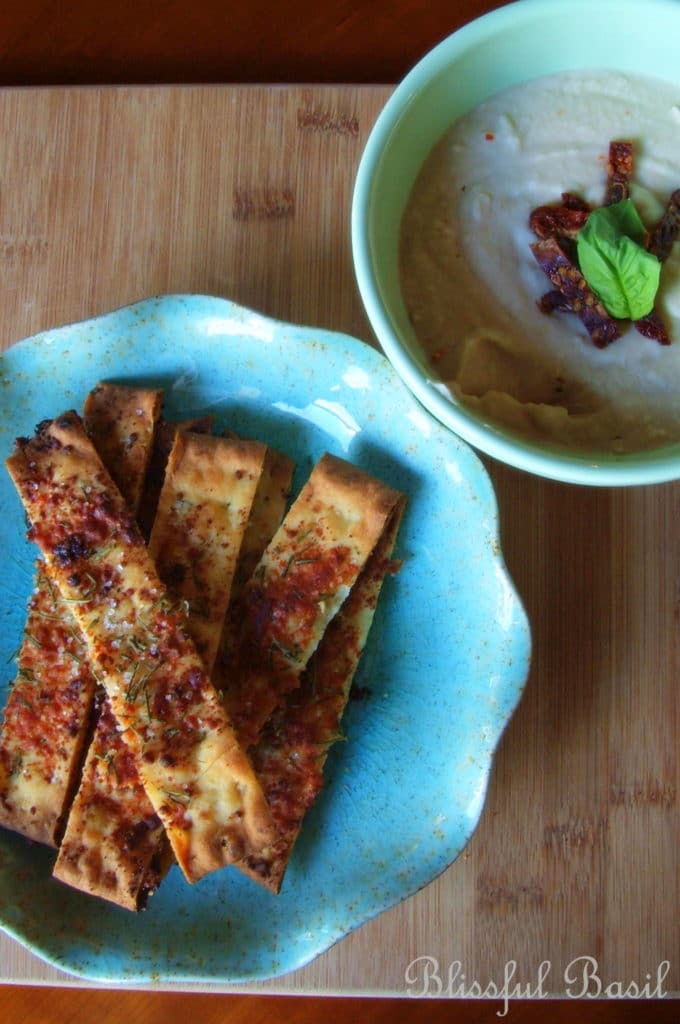 Blissful Basil's White Bean Hummus w/ Rosemary-Parmesan Dippers