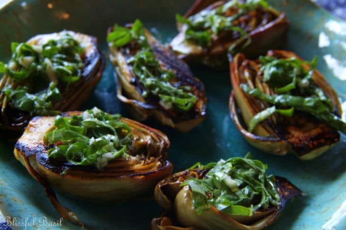 Blissful Basil's Grilled Baby Artichokes with Lemon-Basil Oil (Serves 2)