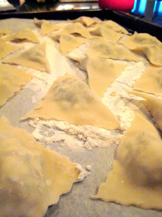 3. Place each ravioli on a baking sheet lined with parchment paper and dusted with flour and refrigerate until required.