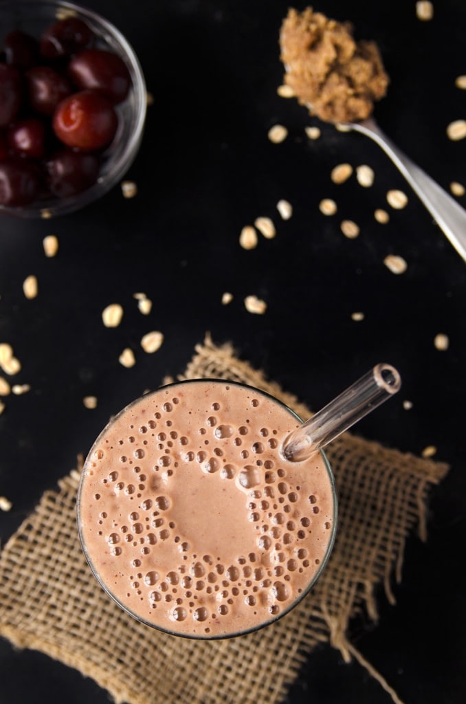 The cherries and banana sweeten the smoothie, the oats provide a filling boost of fiber, and the almond butter adds a richness that satisfies.
