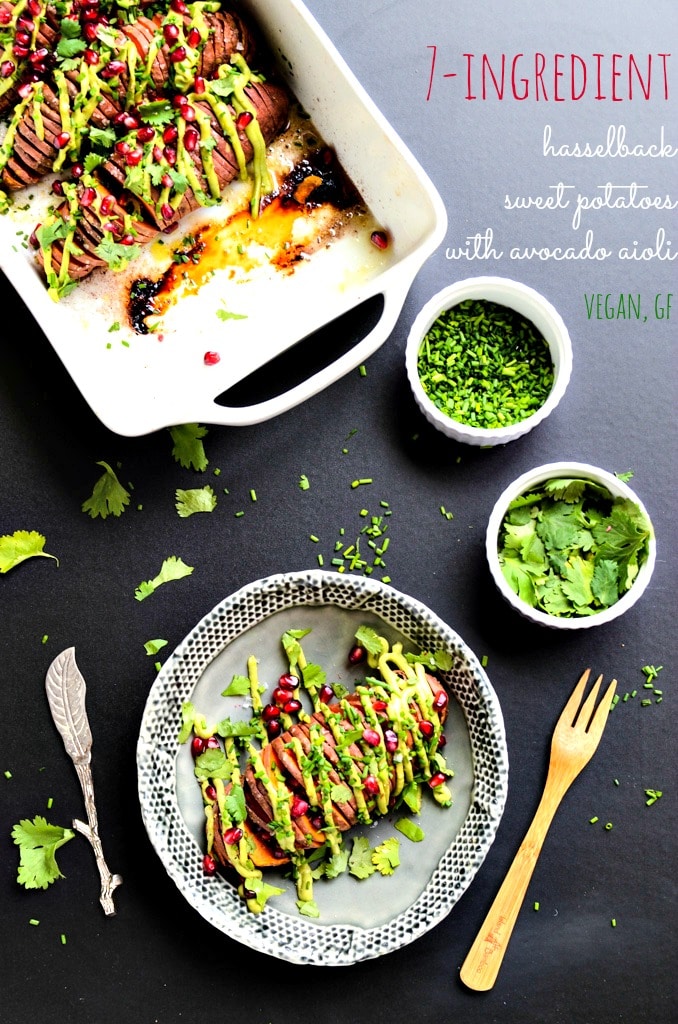 7-Ingredient Hasselback Sweet Potatoes with Avocado Aioli | vegan, gluten-free