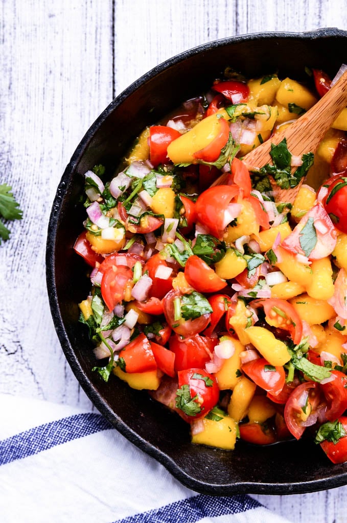 A colorful, sweet, and tangy mango salsa rounds out the dish and cuts through the savory notes in the most lovely of ways. Without this salsa, the dish would feel too heavy for a summer's day but with the salsa, well, it becomes vibrant and lively.