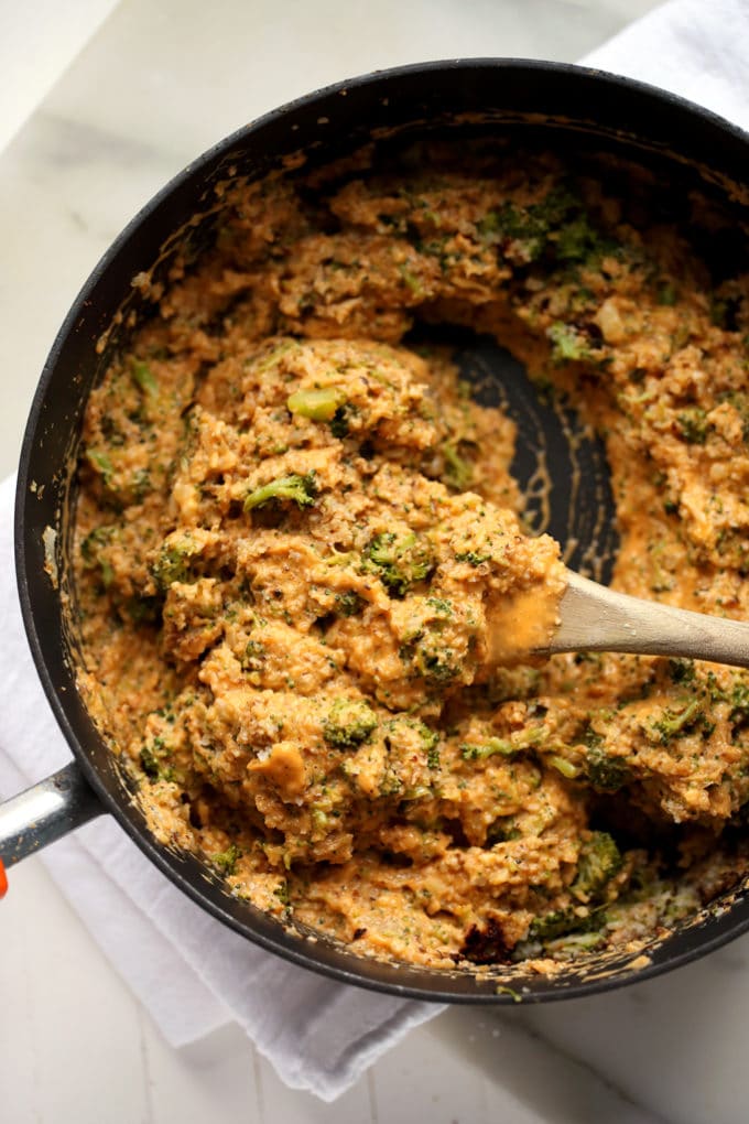 Let's get right to this cheesy goodness. This vegan cheesy broccoli cauliflower rice is another one of those long-forgotten ideas I mentioned in last Friday's post, and I'm bummed that it's taken me this long to test and share it because it's a game-changing, habit-forming delight.
