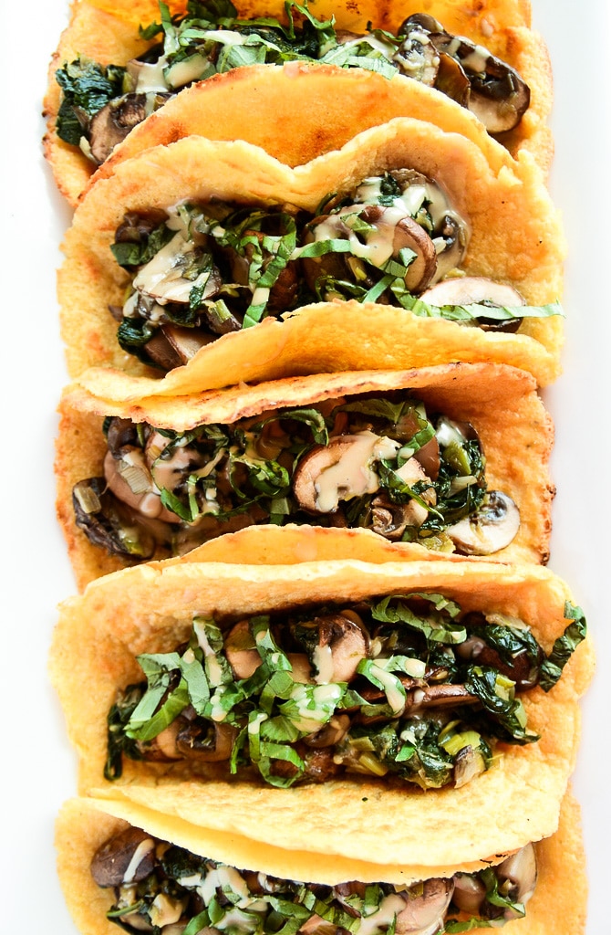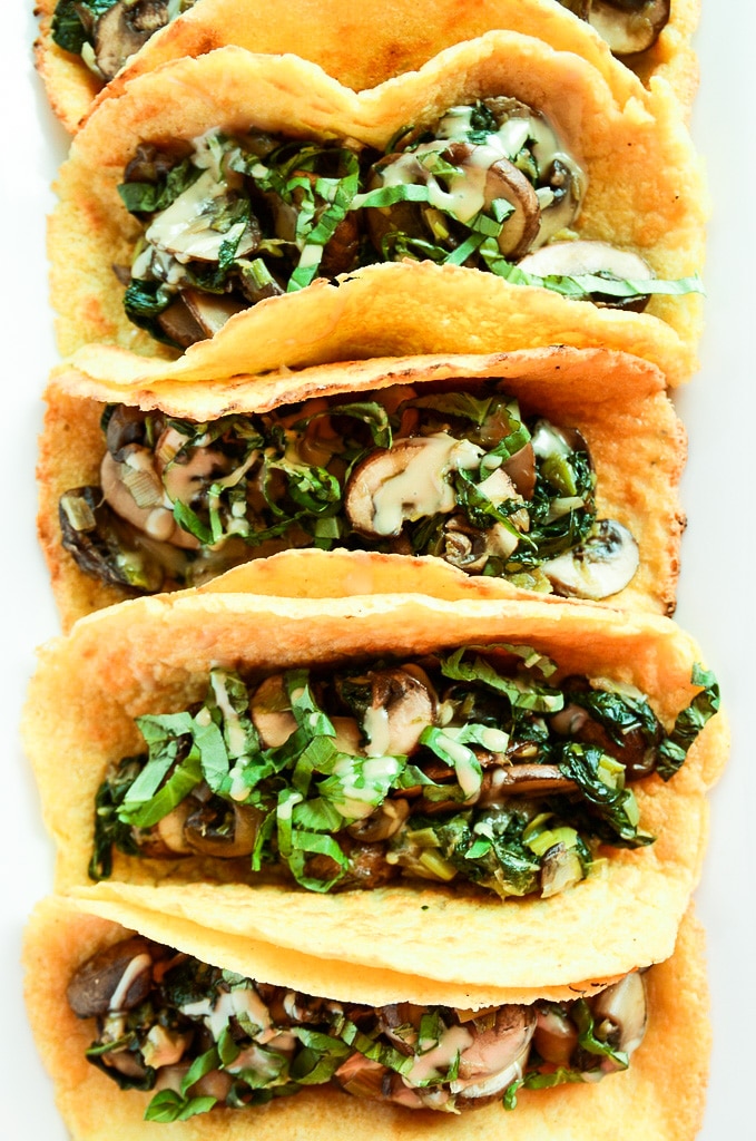 The filling is super simple but so delicious. You'll sauté baby bella mushrooms, spinach, and leeks in a dab of coconut oil and season everything with salt and pepper. After you fill your tortillas with this spinach-mushroom goodness, you'll drizzle a bit of tahini and sprinkle on some fresh basil (if you so choose). Then it's time to fold, bite, savor, and repeat. And please do repeat, because each taco has 6 grams of plant-based protein, healthy fats from the tahini, and an abundance of nutrients that will leave you feeling energized and ready to take on the day.