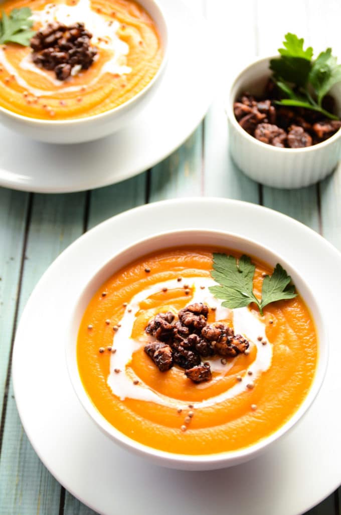 Carrot, Lentil & Squash Soup with Walnut Croutons